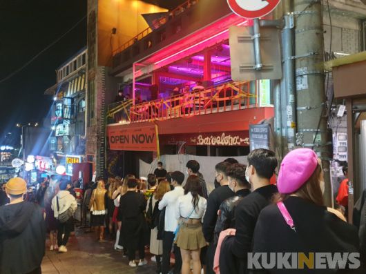 서울 이태원의 한 골목에서 술집 등에 방문하기 위해 사람들이 줄을 섰다. 사진=이소연 기자