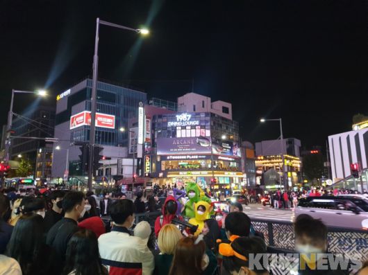 서울지하철 6호선 이태원역. 출구를 빠져나온 사람들은 눈 앞에 펼쳐진 행렬에 놀라워했다. 넷플릭스 드라마 ‘오징어게임’ 속 참가자와 진행요원, 텔레토비, 조커, 공룡, 해리포터까지. 이태원역 사거리는 핼러윈을 즐기는 사람들로 가득했다.