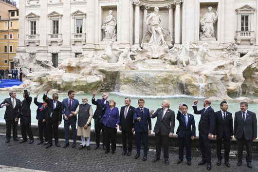이날 촬영에는 마리오 드라기 이탈리아 총리와 에마뉘엘 마크롱 프랑스 대통령, 앙겔라 메르켈 독일 총리, 보리스 존슨 영국 총리, 나렌드라 모디 인도 총리 등 정상급 인사 약 15명이 참석했다.