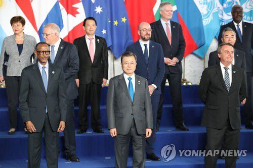 G20 정상들과 기념촬영하는 문재인 대통령 |