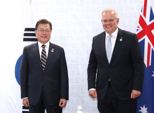 문 대통령과 모리슨 총리는 이날 이탈리아 로마 G20 정상회의 참석 계기로 정상회담을 갖고 △양자 간 협력 △코로나19 대응·기후변화 등 글로벌 현안 △한반도를 포함한 지역 정세 등에 대해 논의했다. 양국 정상회담은 지난 6월 G7 정상회의 당시 열린 회담 이후 4개월 만이다.