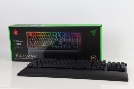 '레이저 Huntsman V2 Linear US(이하 헌츠맨 V2)'는 풀 배열, 8,000Hz, PBT 키캡, 그리고 조용한 리니어 스위치까지 모두 만족하는 게이밍 키보드다. 저소음 리듬 게임에 최적화된 스펙을 모두 갖췄다고 볼 수 있다. 헌츠맨 V2는 이름에 US가 붙은 만큼 영문 각인 제품으로만 출시됐으며, 아직 한글 각인 제품은 출시되지 않은 상태다.