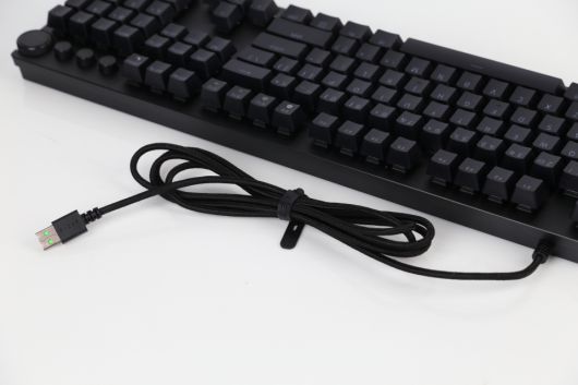 플라스틱 재질의 측면, 하판과 달리 상단에는 무광 블랙 알루미늄이 적용됐다. 주목할 점은 대다수의 게이밍 키보드와 달리 헌츠맨 V2는 상판 그 어디에서도 레이저를 상징하는 로고/텍스트를 전혀 찾아볼 수 없다는 것. 시크하고 깔끔한 디자인은 물론이고 타사의 게이밍 키보드와 확실한 차별화를 이뤄낸 점을 높게 평가하고 싶다.