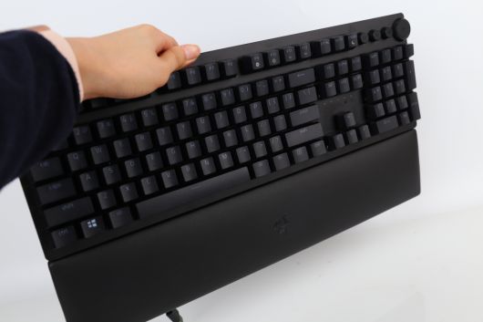 팜레스트의 재질은 아주 부드럽고 쿠션감도 수준급이다. 게이밍 키보드에 제공되는 팜레스트 중에서는 최상급이라 볼 수 있다. 덕분에 장시간 타건에도 손목이 편안했다.