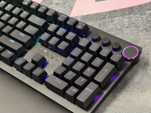 미디어 키와 디지털 다이얼은 어떨까? 미디어 키는 제법 힘을 주어야 인식되는 편이고 적절한 클릭감을 지녀 구분감이 뚜렸했다. 스트로크는 아주 얕은 편이며, 유격은 거의 없었다. 따라서 키보드 사용 중 미디어 키가 잘못 눌릴 일은 거의 없으리라 생각된다.