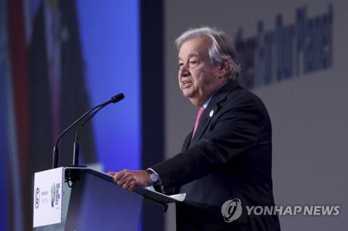 (글래스고[영국]=연합뉴스) 최윤정 특파원 = 안토니우 구테흐스 유엔 사무총장은 제26차 유엔기후변화협약 당사국 총회(COP26)에 참석한 각국 정상들에게 "인류를 구하기 위해" 행동에 나설 것을 촉구했다.