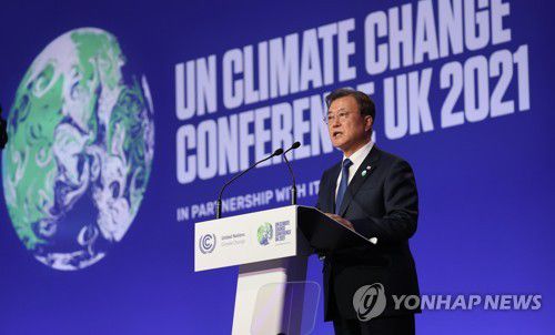 문 대통령은 "쉽지 않은 일이지만 한국 국민은 바로 지금이 행동할 때라고 결정했다"며 "한국은 2050 탄소중립을 법제화하고 탄소중립 시나리오도 발표했다"고 소개했다.