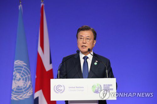 (글래스고[영국]=연합뉴스) 임형섭 박경준 기자 = 제26차 유엔기후변화협약 당사국총회(COP26) 참석차 영국을 방문 중인 문재인 대통령은 1일(현지시간) "한국은 2차 세계대전 이후 유일하게 산림녹화에 성공한 나라로서 산림복원 협력에 앞장서겠다"고 말했다.