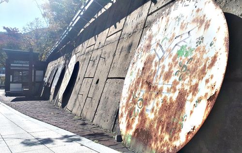 철판으로 만든 미술 작품들은 녹슨 채 방치돼 있고, 설치 장소인 옹벽에서 떨어져 나간 작품도 있다.