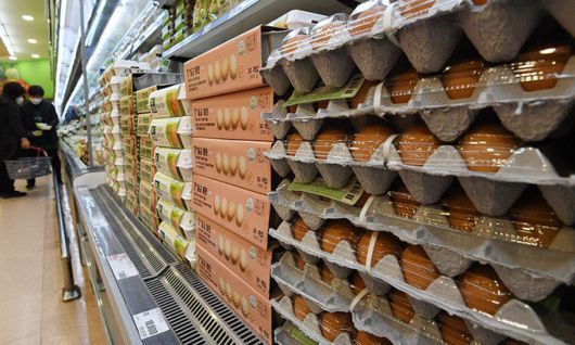 지난달 소비자물가 상승률이 9년 9개월 만에 최고치를 기록한 가운데 2일 서울의 한 대형마트에 계란이 진열돼 있다. 허정호 선임기자 |