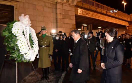 문 대통령은 추모목으로 조성한 은행나무와 관련해 "은행나무는 아주 장수하는 나무이고, 뿐만 아니라 조금 더 지나면 굉장히 아름드리 자라게 된다. 잎도 굉장히 많이 달리게 되고 열매도 풍성하다. 양국 관계도 그렇게 발전해 나가기를 바란다"고 전했다.