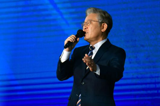 이재명 더불어민주당 대선 후보가 2일 서울 송파구 올림픽공원 체조경기장에서 열린 제20대 대통령선거 선거대책위원회 출범식에서 연설을 하고 있다. 국회사진기자단 |