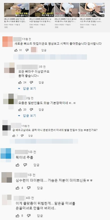 이어 해당 영상을 접한 누리꾼들은 “새로운 뼈소리 맛집이다. 영상 보고 시력이 좋아졌다”, “외관, 뼈다구 이상 없다, 몸매 좋다”, “돈 받으면서 미녀의 발을 만질 수 있는 부분이냐“, “가슴은 저분이 더 이쁘신 듯”, “닮은 꼴 미녀를 은꼴 미녀로 만들어 버리네” 등 성희롱성 발언의 댓글을 게재했다.