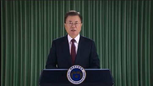 영상 축사하는 문재인 대통령 |