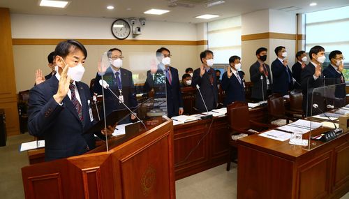 (춘천=연합뉴스) 이재현 기자 = 최근 강원도 내 이슈로 떠오른 도청 청사 이전 논란의 불똥이 엉뚱하게도 도의회 증축 문제로 튀어 행정사무 감사에서 된서리를 맞았다.
