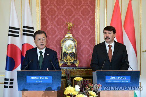(부다페스트=연합뉴스) 임형섭 박경준 기자 = 헝가리를 국빈방문 중인 문재인 대통령은 3일(현지시간) 아데르 야노시 헝가리 대통령과 정상회담을 하고 4차 산업혁명 시대에 대비해 미래 유망산업 분야 협력을 강화하기로 했다.