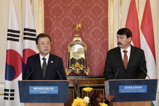 헝가리를 국빈방문 중인 문재인 대통령이 아데르 야노시 헝가리 대통령과 정상회담을 하고 미래 유망산업 분야 협력을 강화하기로 했다.