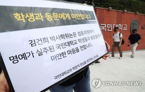 앞서 국민대는 연구 부정 의혹이 불거진 김씨의 박사학위 논문에 대해 검증 시효 만료를 이유로 본조사를 하지 않기로 했다.