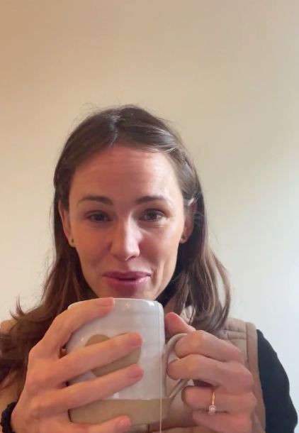 영상 속 제니퍼 가너는 차를 마시기 위해 컵을 들었고, 그의 손가락에는 아름다운 다이아몬드 반지가 껴져 있었다.