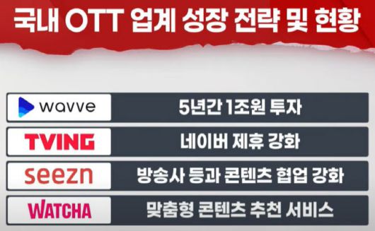 한국을 무대로 글로벌 OTT 공룡들의 경쟁이 치열해지면서 토종 OTT 업체의 더욱 힘겨운 싸움이 예상됩니다. 차별화된 콘텐츠와 서비스, 해외진출 등 생존 전략을 모색해야 할 때입니다.