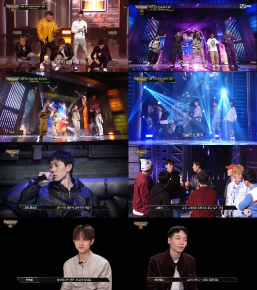 다음으로는 개코와 코드쿤스트의 ‘코코’ 팀 신스, 조광일, 아우릴고트, 태버, 안병웅이 무대에 올렸다. 이들은 ‘웨이크 업’(Wake Up)으로 완벽한 합을 보여줬다. 프로듀서들의 고심 끝에 안병웅을 탈락자로 택했다. 그의 탈락에 나머지 팀원들은 아쉬움에 뜨거운 눈물을 흘렸다.