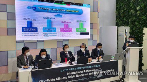 (글래스고[영국]=연합뉴스) 여운창 기자 = 전남도는 5일 영국 글래스고 제26차 UN기후변화협약 당사국총회(COP26) 중 대한민국 홍보관에서 열린 도시환경협약(UEA) 주관 '도시단위 기후위기 대응을 위한 국제포럼"에 참석해 전남도 2050 탄소중립 정책을 소개하고 지방정부가 수행하는 탄소배출 제로 정책의 중요성을 강조했다.