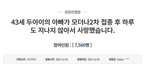 백신 접종 후 숨진 40대 남성의 가족이 올린 청원 글 |