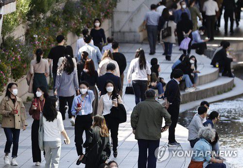 점심시간 서울 청계천에서 시간을 보내는 직장인들 모습. [연합뉴스 자료사진] |
