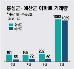 "세종·수도권은 물론, 대구·경북 사람들까지 와서 '줍줍' 싹 다 쓸어가요."(내포신도시 A공인 관계자)