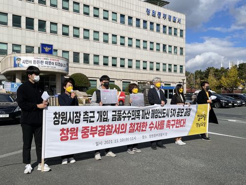 마산해양신도시 수사 촉구 기자회견 |