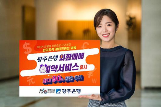 또한 외환 매매 예약 서비스 시행을 비롯한 광주은행 창립 53주년을 기념해 다음 달 16일까지 외환 매매 예약 서비스 오픈 이벤트를 진행해 미국 달러 10만불까지 90% 환율을 우대한다.
