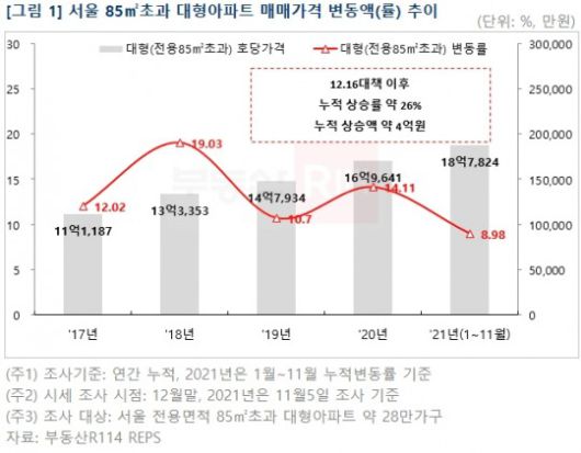 서울 85㎡ 초과 아파트 매매가격 변동 추이 / 자료제공=부동산R114 |