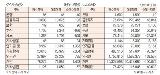 [표]유가증권 코스닥 투자주체별 매매동향( 11월 11일)