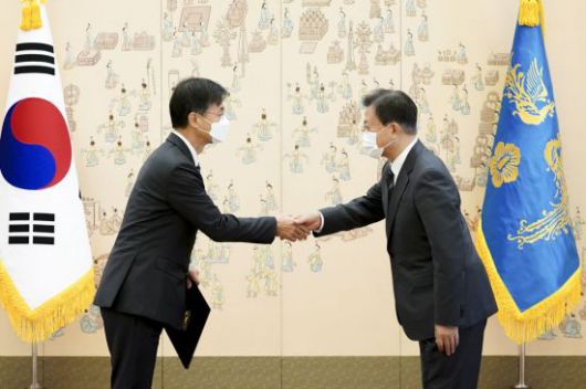 [아시아경제 이지은 기자] 문재인 대통령이 12일 오전 청와대에서 최재해 신임 감사원장에 임명장을 수여하고 '정치적 중립성'을 강조했다.