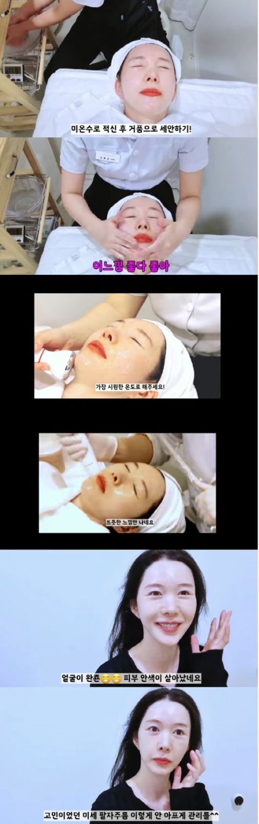 LED 재생 레이저와 모델링 마스크까지 마무리했다. 미세한 팔자 주름과 눈가, 입가 주름에 효과적인 리프팅 레이저도 받았다. 관리 원장은 "20대 초중반 피부다. 워낙 잡티도 없고 탄력도 흠 잡을 데가 없다. 꾸준히 이 정도의 느낌으로 관리하면 된다"라고 칭찬했다.