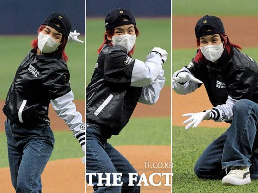 한국시리즈 2차전, 시구자로 등장한 그룹 '훅'의 리더 아이키 |