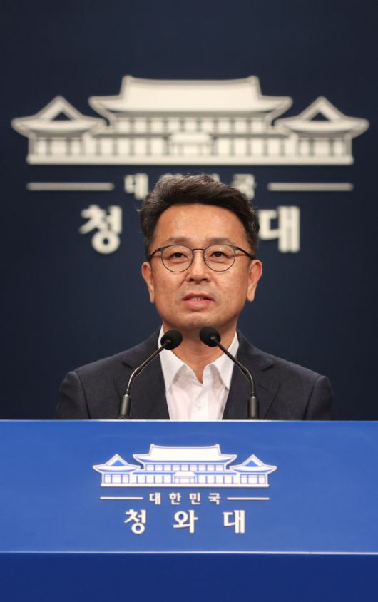 이철희 청와대 정무수석이 26일 청와대 춘추관 대브리핑룸에서 문재인 대통령과 이재명 더불어민주당 대선후보의 차담 결과와 관련해 브리핑하고 있다.(사진=연합뉴스) |