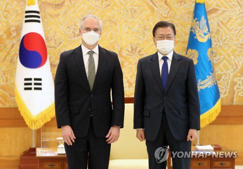 (서울=연합뉴스) 박경준 기자 = 문재인 대통령은 16일 청와대를 방문한 감염병혁신연합(CEPI)의 리처드 해쳇 대표를 만나 코로나19 백신개발 협력 등을 두고 의견을 교환했다.