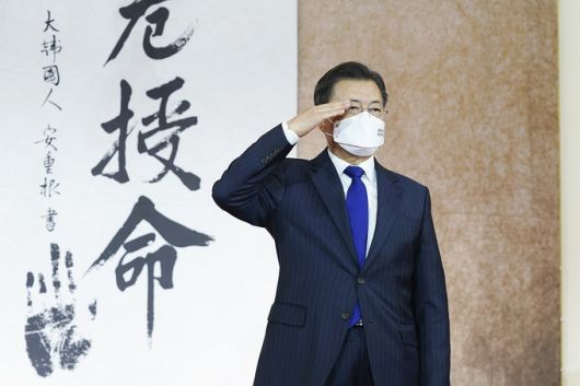 문재인 대통령은 16일 “종전선언을 가능하게 하는 것은 외교의 몫이지만, 국방의 힘으로 뒷받침하는 것은 군의 몫”이라고 말했다.