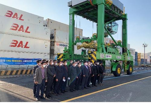 (부산=연합뉴스) 박창수 기자 = 부산항에 항만 미세먼지를 줄일 수 있는 운송장비 도입이 차질없이 진행될 것으로 보인다.