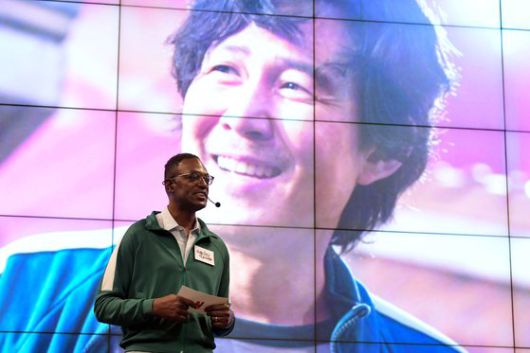 지난 4일 딘 가필드 넷플릭스 정책총괄 부사장이 서울 종로구 JW메리어트 동대문스퀘어에서 열린 미디어 오픈 토크에서 '오징어 게임' 포스터를 띄운 채 인사말을 하고 있다. 뉴스1 |
