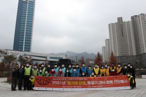 이번 연탄 나눔 활동은 원주혁신도시 이전 공공기관 모임인 '행복가득 가치충만 미래발전 강원'에서 매년 진행하는 사회적 가치 창출을 위한 공동 사업으로 진행했다.