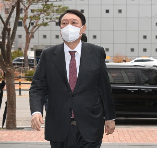 윤석열 국민의힘 대선 후보가 18일 SBS D 포럼 ‘5천만의 소리, 지휘자를 찾습니다’에 참석하기 위해 서울 마포구 SBS 프리즘타워로 들어가고 있다. 국회사진기자단 |