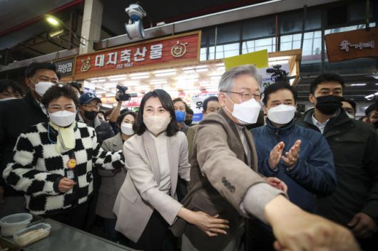 [이데일리 장영락 기자] 이재명 더불어민주당 대선 후보가 부인 김혜경씨와 함께 충북 청주 시장을 찾았다. 김씨 부친 고향이 충주라 이 후보는 “충북 사위 말고 충북 딸이 왔다”고 외쳤다.