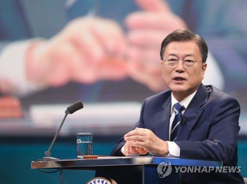 패널 질문에 답변하는 문재인 대통령 |
