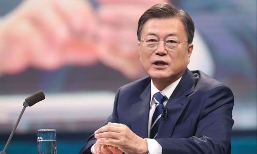문재인 대통령이 21일 오후 서울 여의도 KBS에서 열린 2021 국민과의 대화 '일상으로'에 참석해 국민패널들의 질문에 답하고 있다. 뉴시스 |