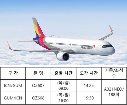 앞서 아시아나항공은 2003년 인천-괌 노선 중단을 결정했다.