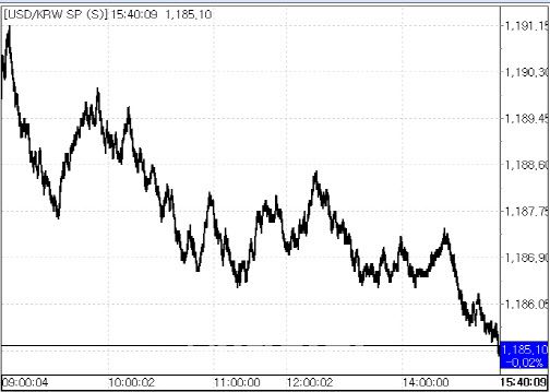 22일 서울외국환중개에 따르면 환율은 전 거래일 종가(1185.30원) 대비 0.20원 하락한 1185.10원에 마감했다. 이날 환율은 전일 종가 대비 5.20원 상승한 1190.50원에 출발해 1191.10원까지 올랐으나 곧이어 1180원대로 상승폭을 낮췄다. 오후들어서는 1180원대 중후반에서 등락하다가 장 마감 직전 하락했다. 2거래일 만의 하락이다.