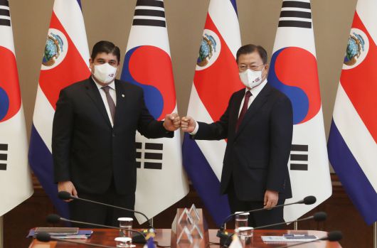 문 대통령과 알바라도 대통령은 이날 정상회담에서 2022년 한·코스타리카 수교 60주년을 앞두고 그간의 양국 간 협력 성과를 평가했다. 문 대통령은 알바라도 대통령에게 한국 정부의 한반도 평화 프로세스에 대한 지속적인 지지와 협조를 당부했다. 알바라도 대통령은 이번 국빈방한 계기 DMZ 방문 소회를 피력하고, 한국의 한반도 평화 정착을 위한 노력에 존경과 변함없는 지지 의사를 표명했다.