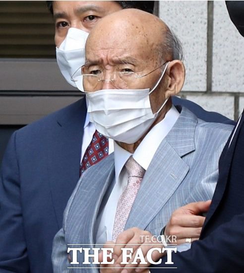 전두환씨가 고(故) 조비오 신부 사자명예훼손 혐의에 대한 항소심 재판을 받은 뒤 부축을 받으며 9일 오후 광주 동구 광주법원을 나가고 있다. |